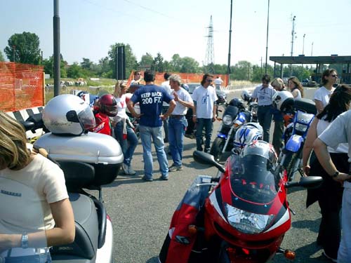 Le ville del Brenta - 31 maggio 2003 E il gruppo aumenta... (perdonate la rima) All'insegna della "moto-cultura", giornata trascorsa tra le opere del Palladio e suoi illustri colleghi. Un sol leone impietoso, ma il ristoro tra l'ombra degli splendidi parchi ripagava il sudore "versato". E ancora una volta (brutto vizio il nostro) a tarallucci e vino, o meglio, baccalà mantecato, polenta, schii e peoci. Poi una bibita fresca a Chioggia, e ritorno contenti alle terre estensi.